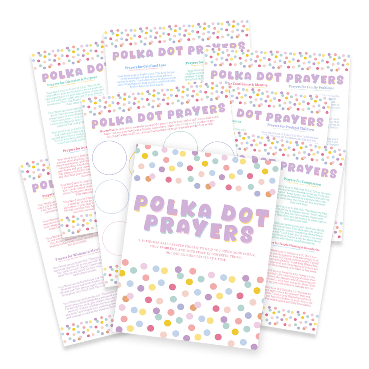 Not sure what to pray or how to start? This free Polka Dot Prayers bundle gives you a simple, Scripture-based way to focus your prayers... one dot at a time... with 72 prayers for anxiety, motherhood, forgiveness, identity, and more; just tell me where to send it!